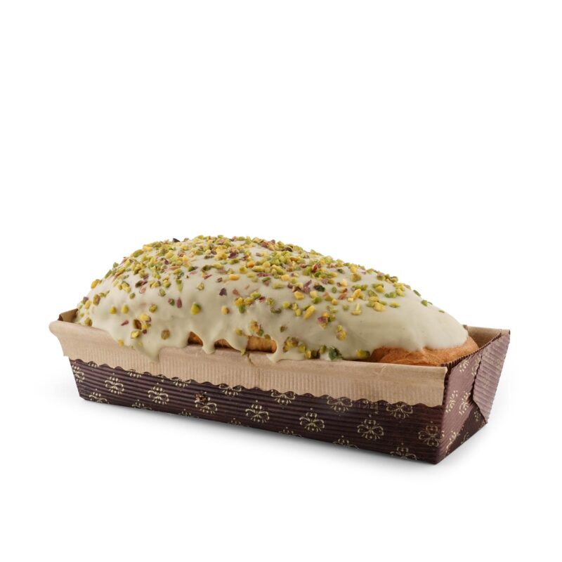 Il Plumcake al Pistacchio è una delizia creata con la base del panettone classico, farcito con la crema al Pistacchio e coperto con granella di Pistacchio.